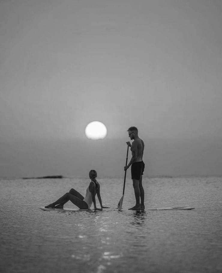 Bajé el longboard y caminamos juntos hacia el agua y la ayudé a montarse en la tabla. Ella iba sentada y yo parado iba remando hasta llegar al lugar que quería. Habían otros surfers que reconocí, que hacían los mismo, pero no estaban cerca. No hablamos casi nada mientras el atardecer ocurría, solo le pregunté si estaba bien y si se sentía cómoda. Ella no paraba de mirar el horizonte, a veces volteaba la vista para mirarme y sonreír, yo me derretía.